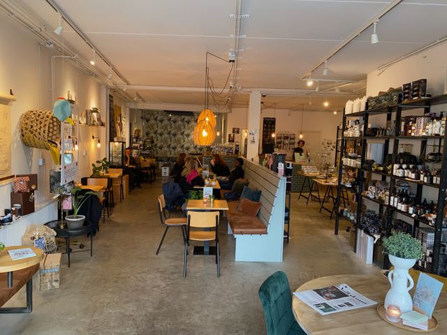 Hier is het heerlijk snuffelen tussen alle mooie woonaccessoires. Sieraden van A Beautiful Story, leren tassen en portemonnees van Keecie of een tegel van StoryTiles. Geslaagd? Trakteer jezelf op een lekkere chai latte en een stuk taart!
