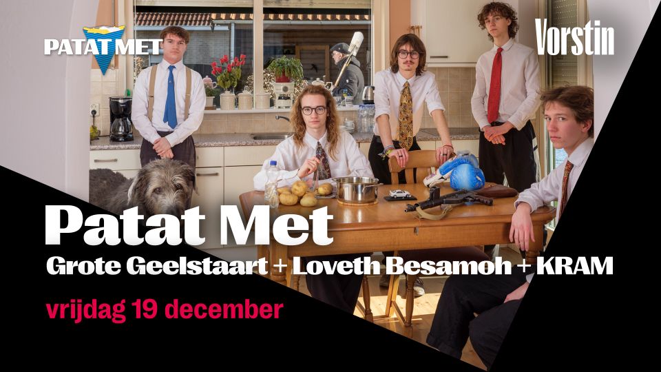 Nieuw talent krijgt de spotlights tijdens Patat Met, het maandelijkse podium voor opkomende artiesten in De Vorstin. Op vrijdag 19 december ontdek je drie acts die de toekomst van de Nederlandse popscene kleur geven – en dat allemaal voor slechts €9,50, inclusief een lekker patatje mét.